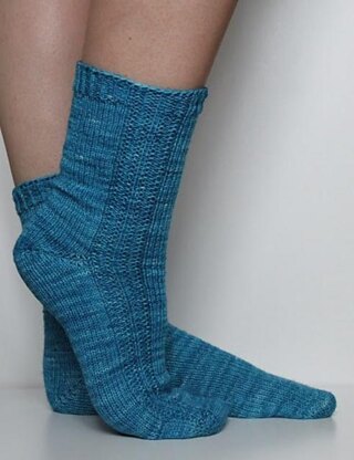 The Ridge Socks are worked toe-up, with a little ridge at the outside of the foot as a detail. They are suitable for men as well as women, and are given in a range of sizes.