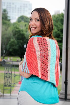 Riley Rose is a 3-colored shawl worked sideways. You begin on the right tip with an interesting garter-tab cast on with a mock i-cord edging and increase up to the point of the triangle and then decrease for the left side of the shawl. Best of all, the stitch patterns and colors change just often enough to keep you from getting bored!