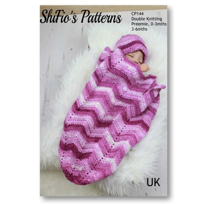 This is our delightful crochet pattern for a snug baby cocoon! Crafted with the beloved ripple stitch, it's perfect to wrap your little one in a cozy, handmade cocoon paired with a matching beanie. The pattern caters to three sizes: preemie, 0-3 months, and 3-6 months. All you need to bring this pattern to life is some double knitting yarn and a 3.5mm crochet hook. Let's create something beautiful together!