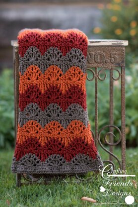 Add the beautiful colors of fall to any room with this fun Ripple Lace Afghan. This crochet pattern is fun and quick to work up. The waves add just the right touch of the season and a warm and comforting feeling.