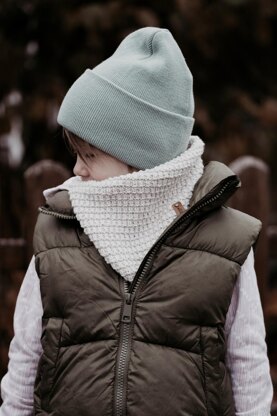 Die Rishalssokk ist eine Halssocke für groß und klein. Durch den vorderen Latz wird der Abschnitt und durch den Schlauch der Hals schön warm gehalten.