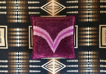 Yarns: Worsted, aran, or medium weight yarns, CYC category 4, and/or bulky or chunky weight yarns, CYC category 5. The sample pillow used a mix of bulky weight and medium worsted weight yarns.