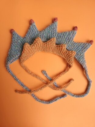 This pattern creates a one-piece knit headband featuring five Crown Peaks for decorative shaping. The band uses symmetrical increases and decreases to transition smoothly from the narrow I-cord ties to the final width. Yarn Recommendation: Using a yarn with a sparkling metalic thread or sequins wil enhance the defined peaks and create a beautiful, festive look perfect for holidays or special events.