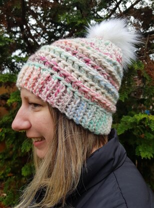 The Riverside Beanie - Bottom Up is the perfect textured slightly slouchy beanie that will be sure to keep you and your loved ones warm. This beanie is made using super bulky yarn, which not only makes it thick and warm but also can be made in under an hour, making this the perfect market prep. beanie!