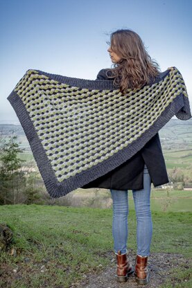 A modern, asymmetric, crochet shawl.