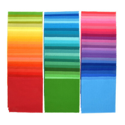 The Kona Cotton Bright Colorstory has all the essential rainbow shades you’ll ever need. Use in contrast with patterned squares for a dramatic effect. Each pack contains 85 pieces of 5 inch squares made from 100% pure cotton. Ideal for quilting.