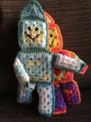 Crochet pattern for Robert Robot made using granny squares