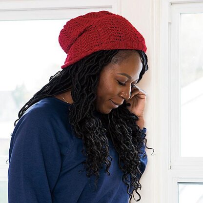The Robin Slouch Hat is a beanie with a relaxed fit knit in the round from the brim up.