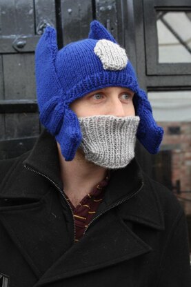 Chunky knit pattern, any Chunky knit yarn will work fine. Suggest StyleCraft Special Chunky (Royal) Blue and StyleCraft Special Aran (Silver) Grey. 100g ball of each. 4 6mm (US 4) Double pointed needles required and 2 single pointed 6mm (US 4) Needles if you prefer for the details) 4 Royal blue buttons required to attach face mask. A5, 0.25 Micron Acetate (1 Sheet)