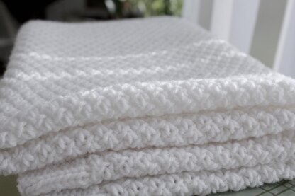 This textured baby blanket is anything but plain. An all-over, easy to knit stitches pattern gives a timeless style and the 2x2 all round ribbing is a classic.