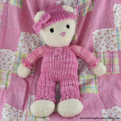 Soft and cuddly with it's cozy ribbed pajamas and a fun pompom tail, this bear is sure to be treasured. Measuring 16 inches tall and knit completely flat, this bear is easy to make and is the perfect gift for a baby shower or any little one.