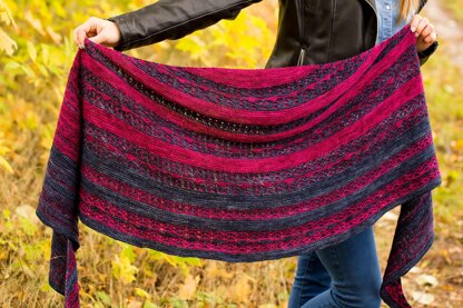 Crescent-shaped shawls are always versatile, but this long-stretched narrow version, ideal for draping around the neck, makes this classic shape even better.