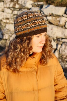A simple Fair Isle beanie incorporating the motifs from my Roosty Tank Top pattern. Two colourways are provided, both inspired by Shetland's landscape.