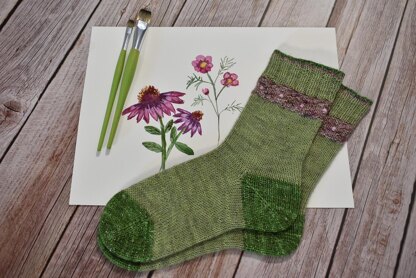 Inspired by ‘Romeo and Juliet’ by William Shakespeare, This socks pattern ‘Rosaline’ (in English Rosalind) evokes the first love of Romeo. Rosalind rejected Romeo’s love to let the tragedy live with Juliet! I wanted