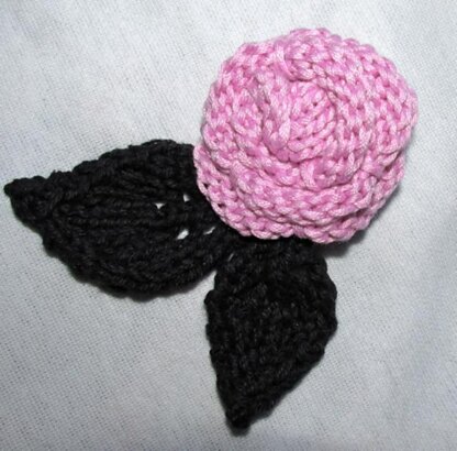 A knitted rose and leaves to make a brooch, or as a decoration for a bag, hat, throw, baby bootees – whatever you like. Two ways to make the leaves and a photo tutorial to work the rose. Use any yarn of your choice.