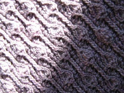 Oversized lacy scarf with cunning little rosebuds. Beginning level lace work with DK weight yarn - easy peasy!