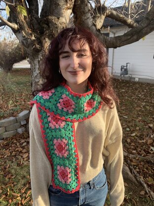 Granny squares are my absolute favorite kind of crochet! This is a gorgeous granny square scarf with the lovely colors of a rose garden in spring! 12 squares make up the scarf with a 2 row border. Can be made in cotton or acrylic as desired!