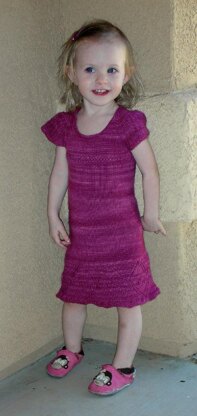 Rose in Bloom is a sweet little summer dress that I designed for my little growing rose’s birthday. It’s a simple knit, worked in the round from the top-down, with lacy cap-sleeves and an easy lace panel decorating the bottom. It’s light and airy, the perfect dress for your summer tea party.
