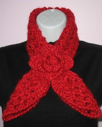 The scarf is hand crocheted using soft rose red mohair blended with 70% wool. There are two loving red hearts crocheted at the two ends.