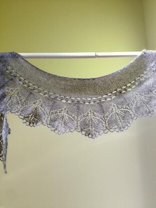 This shawl was inspired by an old table cloth pattern, through the short rows it formed the new moon shape,and the rose pattern created the beautiful lace edge. It can be knit with any weight of yarn, you just have to watch out the gauge for the proper size. Normally it will use 2 skins of lace, fingering and mohair weight yarns.