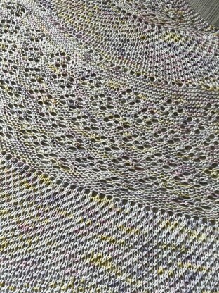 This semi-circle shawl uses the construction of a Half-Pi Shawl from Elizabeth Zimmermann, where the diameter of the shawl doubles, as does the circumference. With the passing of Angela Lansbury, back in October 2022, this colour way was inspired by her iconic character of Mrs. Potts, the teapot, from Beauty and the Beast. As soon as I saw this yarn, a shawl idea came to mind. I envisioned something simple, yet elegant. Nothing too fancy for the character of Mrs. Potts. A combination of the Rose stitch, a textured stitch, with Rosebud Eyelid Lace creates a beautiful shawl that is meditative to knit, while being simple, yet elegant.