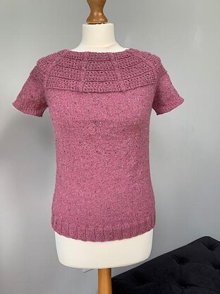 This top is knitted from the neck down. Starting with a pair of 3.5mm needles to form the yoke and the armholes, the bodice is knitted in the round once you have joined the button band so a 3.5mm circular needle is required. The sleeves are then knitted in the round using the magic loop method so the top is seamless. The only finishing required is to thread in the loose ends and sew on two 10mm buttons.