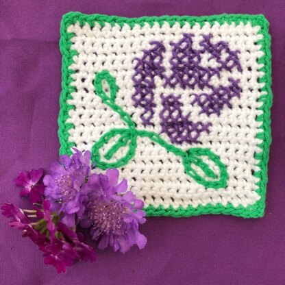 This square motif was designed for Granny Square Day 2023 (15th August), an annual event hosted on Instagram by Simply Crochet magazine. It’s an adapted version of one of the roses from my Skull and Roses Pattern. A double crochet (UK)/single crochet (US) square bordered with one row of double crochet, embroidered with a rosebud created from cross stitches and surface slip stitched leaves. Simple, but beautiful!