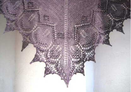 The pattern is fully charted (no row-by-row written instructions) and includes 3 sizes in the instructions along with complete details of how to make this shawl as large or small as you like.
