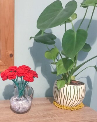 Crochet Pattern for a beautiful bouquet of a Dozen Roses. Pattern includes written instructions and reference photos. 4 pages. 20+ photos.