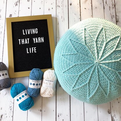 You will need 4 balls of Paintbox Yarns Cotton Aran, or a worsted weight yarn of similar yardage, to complete the single color cushion. You will need 4 balls of a main color and 1 ball of a contrast color to complete the two color cushion.