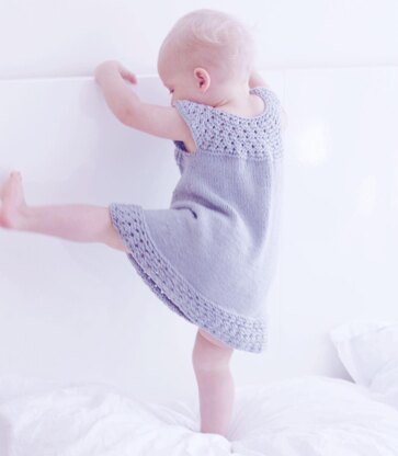 Rosey Bug has a classic lace pattern around the hem. Top down design, and made to be worn loose and grow with your baby. The adorable handmade buttons can be found in the Etsy shop: Katrinkles