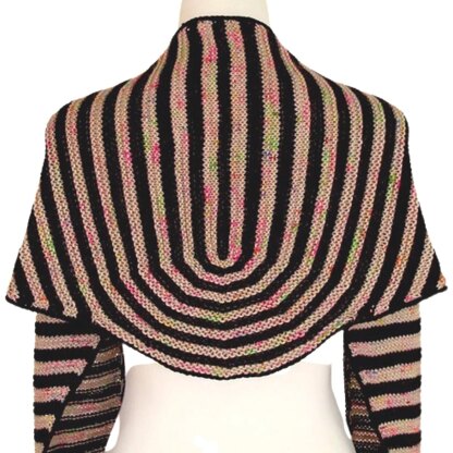 In stripes reminiscent of vertical strata columns, the graphic colorplay of the Rosinca Shawl is sure to make it a fast favorite. A simple edging gives it the polish to be at home anywhere. As the stripes radiate outward, this shawl is ready for the adventure of whatever your own particular journey may be.