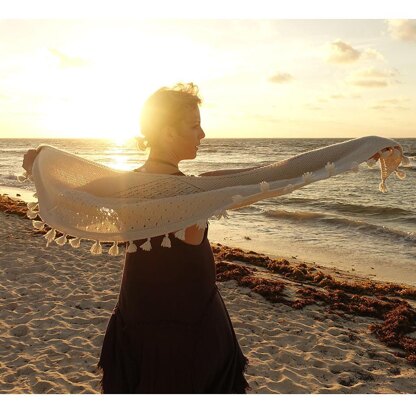 Rosy Shawl is the perfect size to drape over your shoulders on a cool summer evening or to wrap around your neck during the fall/winter months. The dainty eyelet lace juxtaposed between two rustic Garter Stitch side panels adorned with mini tassels are details that make it extra special. Worked center out and top-down, the shawl has just the right amount of lace to keep you on your toes and just the right amount of Garter Stitch to keep you social.
