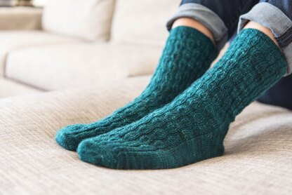 Sailing through a storm might present a challenge, but these socks are a breeze. Worked from the toe up, the knitter will use a simple technique to create a dramatic effect. Ribbed stitches make for a cozy, flexible fit, while dropped stitches create waves within the design. The texture created is simple enough to enhance your favorite Countess Ablaze variegated yarn, but interesting enough to transform your favorite semi-solid.