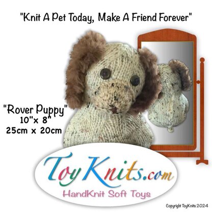 PATTERN NOTES: This playful puppy is worked flat in one piece. The knitted ears, tail and muzzle are sewn on. The nose is embroidered on the muzzle. I worked my puppy in realistic colors, but you can be creative with the colors to make something unique to you.