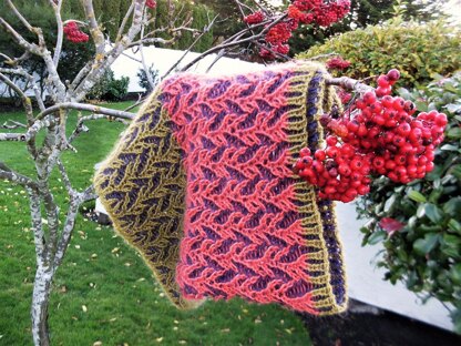 The cowl is knit bottom up in the round on circular needles in two colour brioche stitch pattern. The knitting starts and finishes with the regular cast-on and bind-off methods.