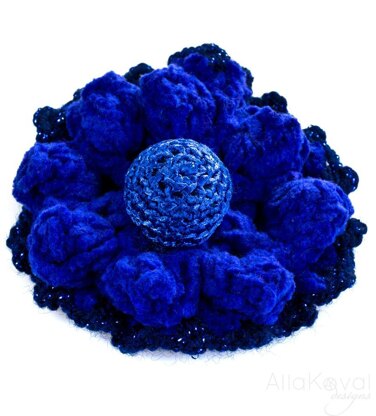 Yarn: Crystal Palace Yarns Cotton Chenille (100% Cotton/50 g (1.75 oz)98 yds) #8095 french blue - 3 hanks; Lion Brand© Yarn Vanna’s Glamour (96% Acrylic, 4% Metallic Polyester/50 g (1.75 oz)/202 yds) #109 sapphire – 1 skein; Katia Sevilla (100% Nylon/50 g (1.75 oz)/153 yds) #26 blue - 1 ball