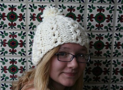 Royce Hat has a lovely lace and ribbing pattern with the option to add a cute pompom on top.