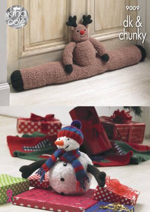 Rudolph Draught Excluder, Christmas Tree Skirt and Snowman Toy in King Cole Chunky & DK - 9009 - Downloadable PDF is a Advanced Knitting pattern by King Cole, available as a Downloadable PDF and includes instructions in English. Super fun to make, this pattern could be your next masterpiece!