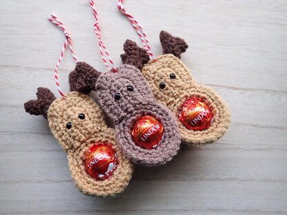 Ideal for gifting as well as hanging on your Christmas tree, you’ll love this unique reindeer decoration! Designed to fit a Lindt chocolate ball in the nose pocket, this reindeer pattern uses single crochet (some worked in the round, some in rows) to create simple parts which are then crocheted together to join. This quick and fun project is suitable for confident beginners.