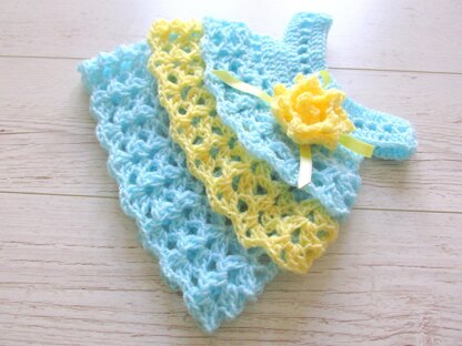 -4 ply yarn :aqua blue 50g, yellow color 40g, -yellow satin ribbon -tapestry needle