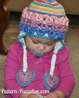Frilly and colorful makes this hat a happy, bright addition to everyone’s wardrobe. Make it with or without earflaps and play around with the colors to get a truly unique look!
