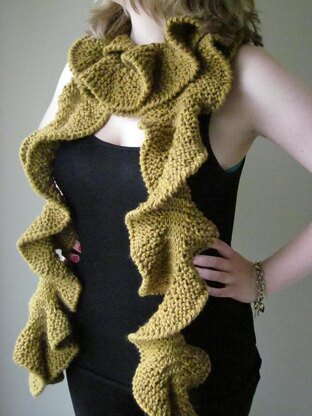 I love the idea of having a soft cozy neck piece. Sometimes I find the long scarves a bit cumbersome, and sometimes I find the skinny scarves impractical. The solution: A ruffled scarf that has the ability to cover up all of my neck yet short enough to not weigh me down or get in the way.