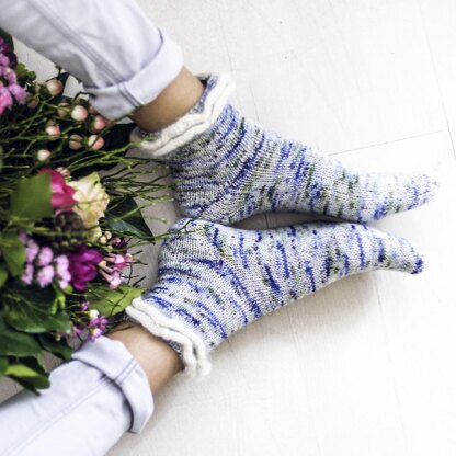 These socks are knitted cuff-down. There is also a description for all three types of heels: afterthought, short row and flap heel. Links to educational videos are provided in the pattern.