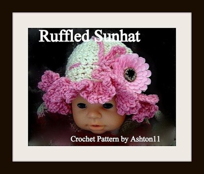 This listing is for a CROCHET PATTERN FOR A DOUBLE RUFFLE, DRESSY SUNHAT, with instructions so you can make it in NEWBORN TO AGE 5!