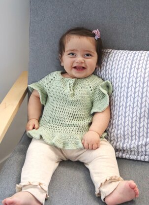 This top features some of the cutest elements crochet has to offer: ruffles and puff stitches! Add that to a seamless, top-down design and you've got a piece that's as fun for your little one to wear as it is for you to make!
