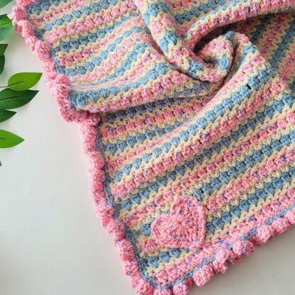 Easy crochet baby blanket, quick baby shower gift or nursery accessory. This product is a DIGITAL instant download (not a finished item) for a crochet pattern to make The Spring Ruffles baby blanket. When complete, the finished item will be approximately 32”L x 30”W. The pattern is written in English, U.S. crochet terms. Skill Level: Easy/Beginner Materials: Weight #5 Yarn (Approx. 1092 yards) Color # 1 - Two balls (blanket and border) - 213 yards per ball Color # 2 - Two ball - 222 yards per ball Color # 3 - One ball - 222 yards per ball 5 mm hook Yarn Needle Please do not copy or redistribute this pattern or claim it as your own. YOU MAY SELL YOUR FINISHED ITEMS IF YOU LIKE, but please credit Stitchedbyjonnee the designer. Thanks!