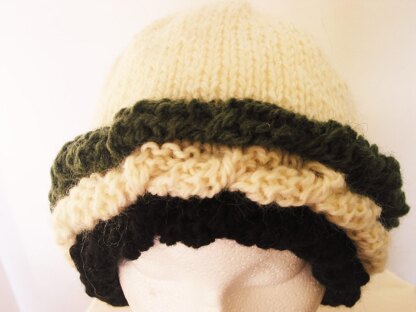 For a multicolour hat, you will need small amounts (approx 20 to 25 gms) of the contrast colours and 1 full ball of main colour