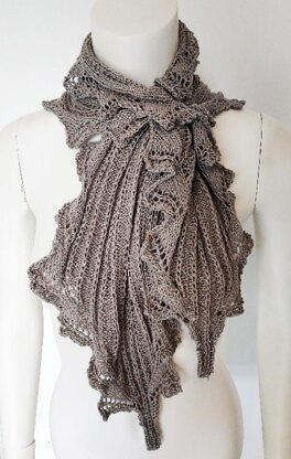 It is a linen scarf to use as an accessory item on chilly summer evenings. It was based on a stem combined with ruffles at the sides. The scarf is an amazing project knitted in two portions and finished with sewing. The directions are for the odd rows only on the even rows knit or purl as they appear, purl yarn overs on the Ruffle pattern, and knit/purl yarn overs as the Stem pattern range appears.