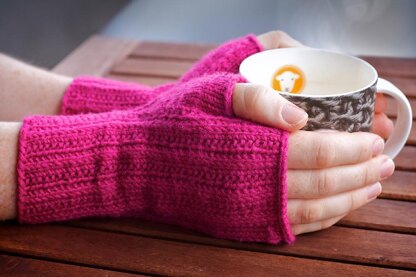 With a super-stretchy stitch pattern and equally bouncy yarn, these snug mitts hug your hands beautifully, providing warmth without irritating even the most sensitive skin.
